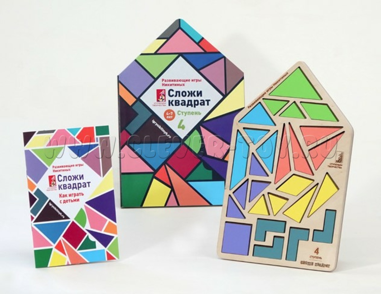Данный набор это четвертая ступень в развивающей серии игр от Никитиных "Сложи квадрат", предназначен для детей от 4 до 7 лет. Желательно использовать после освоения первой и второй ступени и третей ступеней. В следующих наборах (ступенях) игра будет усложняться.