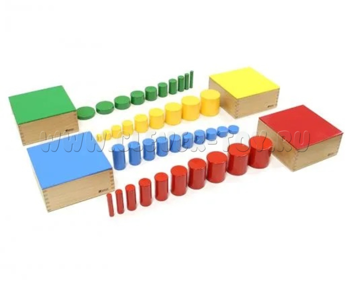 В комплект входит: 2.05 Блоки с цилиндрами - вкладышами. 2.05.1 Цветные цилиндры. 2.05.2 Проекции для цветных цилиндров.