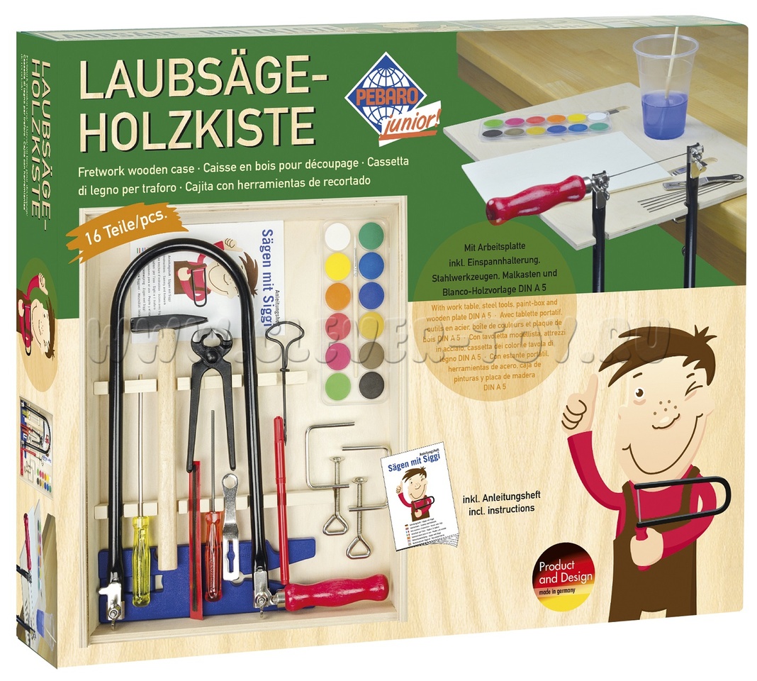 Набор инструментов Pebaro в ящике (для работы по дереву с лобзиком и струбцинами)