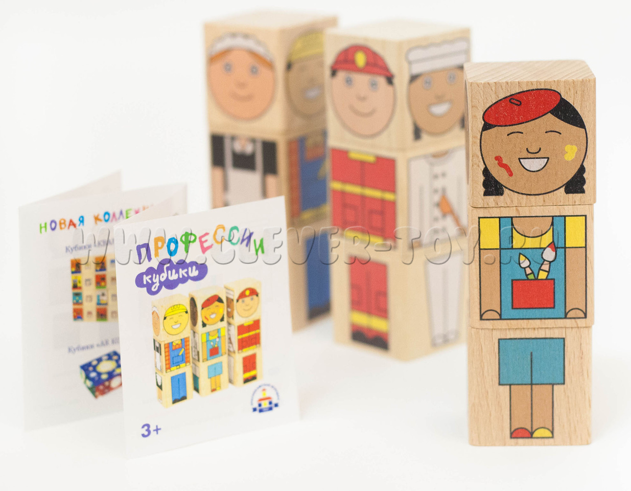 В комплект "Профессии" входит 9 деревянных кубиков: