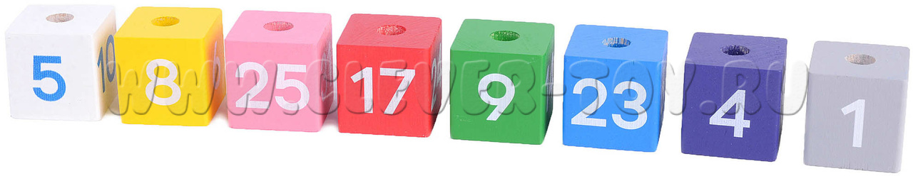 • 8 разноцветных кубиков с цифрами (4 х 4 х 4 см);