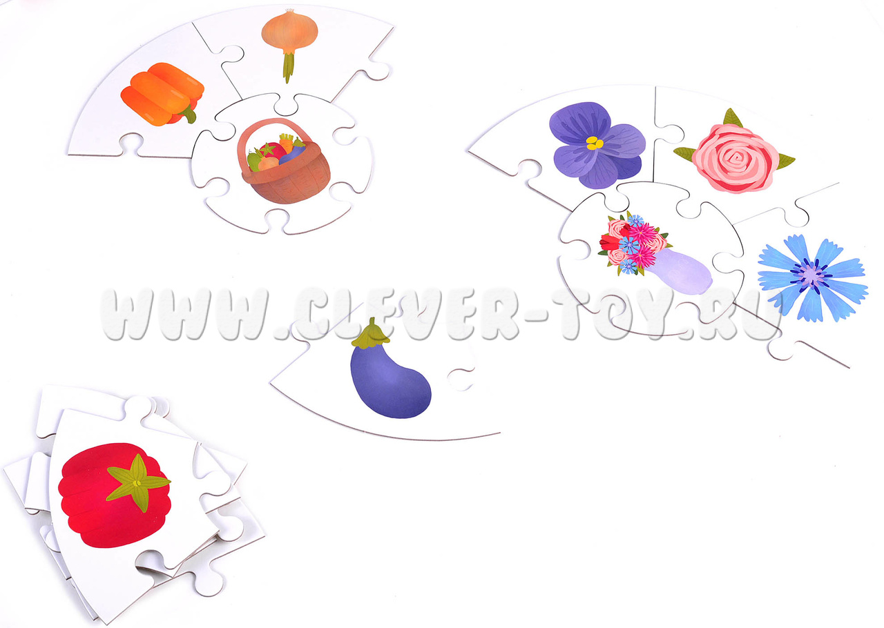 1. Игра с белым фоном. Разложите на столе круглые центральные элементы головоломки, остальные детали перемешайте и предложите ребенку подобрать (самостоятельно или вместе со взрослыми) 6 подходящих к серединке деталей. Задавайте вопросы, просите назвать каждый предмет в отдельности и всю группу целиком;