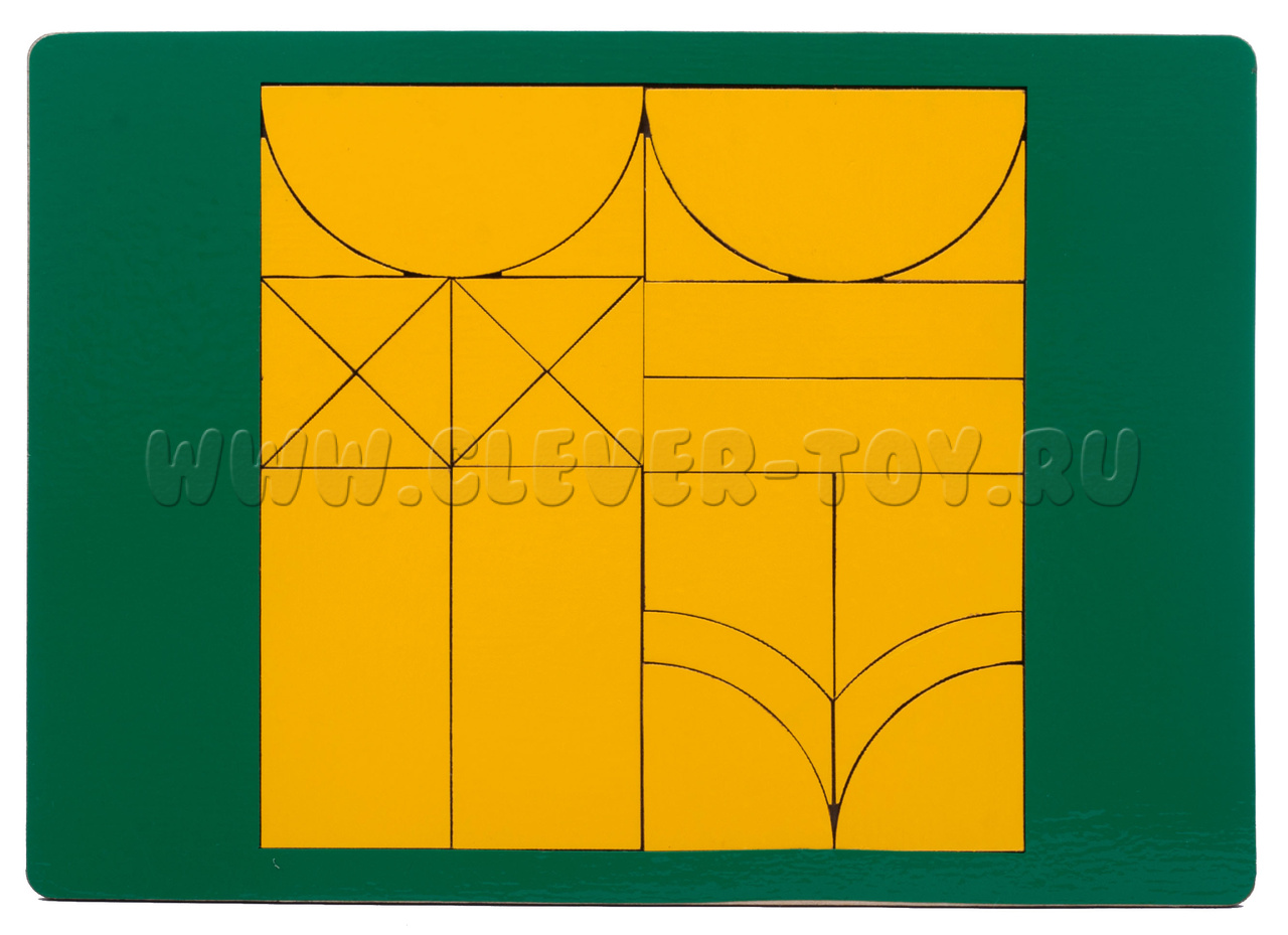 Головоломка Джунгли представляет собой квадрат разделенный на 24 элемента различных форм. Игра включает в себя набор заданий с различным уровнем сложности, чтобы ребенок мог постепенно развивать свои умственные и творческие способности.