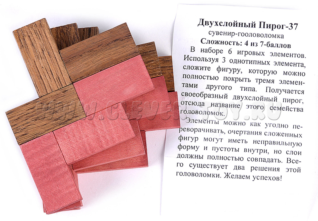 “Слоеный пирог” – популярный в последнее время тип головоломок. Основная задача правильно выложить два слоя деталей из разного цвета.