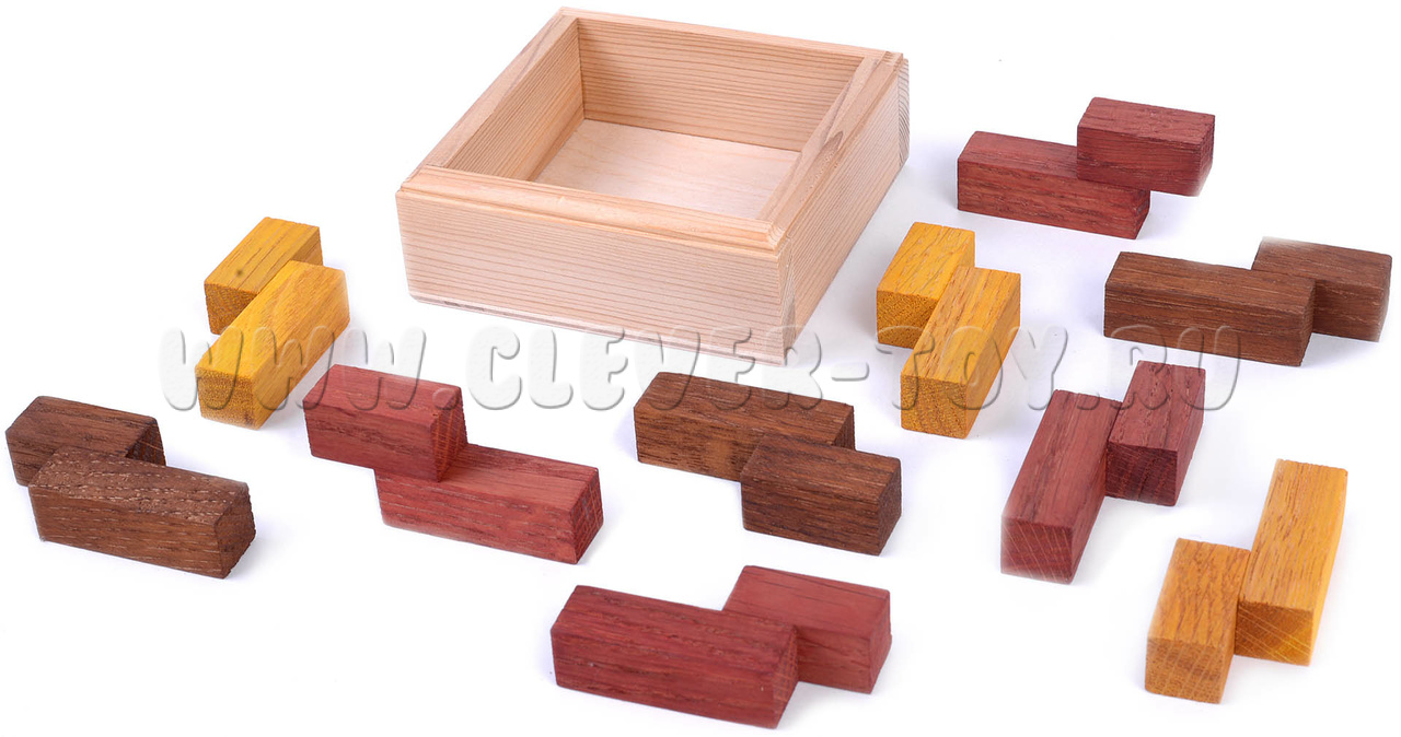 Автором этой головоломки является профессор Дэвид Кларнер, математик и популяризатор головоломок. Профессор доказал, что N-пентакубиками можно заполнить не только ящики 2х4х5, 2х5х5, но и 2х6х5, 2х7х5. А из этих ящиков можно составить и более вместительные ящики, сплошь заполненные N-пентакубиками.