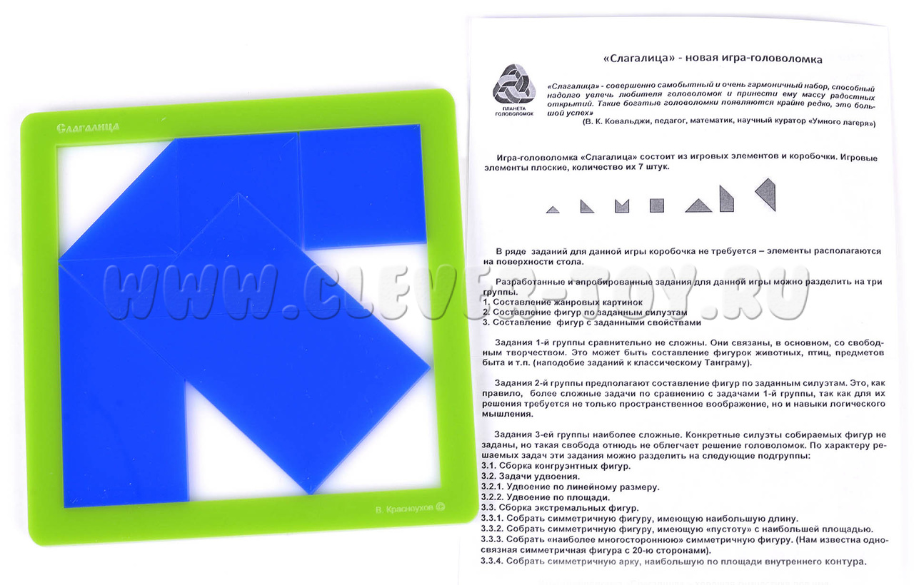 Игра-головоломка «Слагалица» состоит из 7 игровых элементов и коробочки.