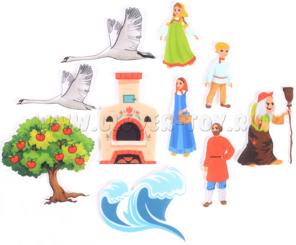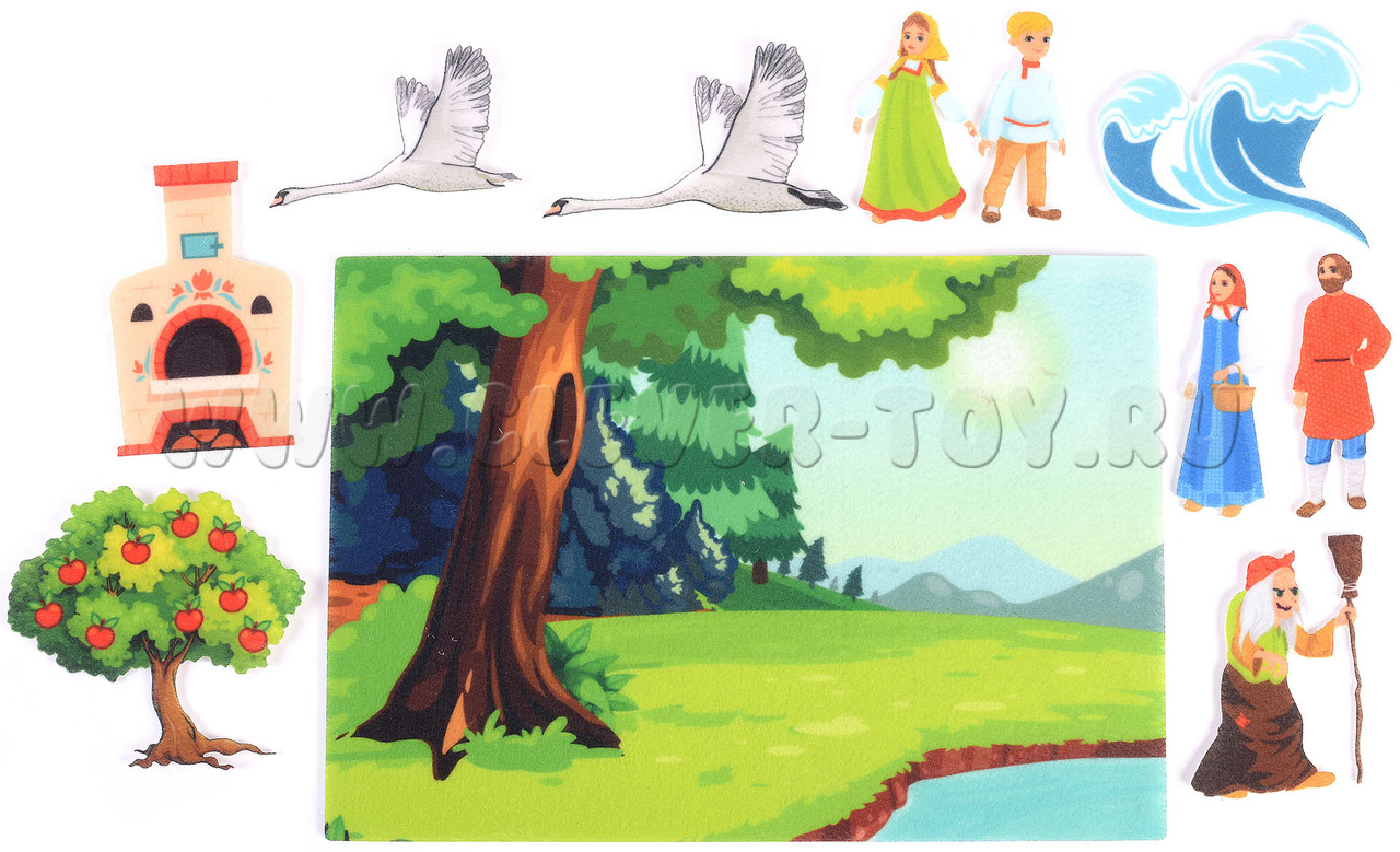 Детское игровое пособие познакомит ребенка со сказкой "Гуси лебеди". Выполнено из фетра по типу кукольного театра и подойдет для театральных, дидактических и сюжетных игр. Фигурки легко прилипают и отлипают, не мнутся и не рвутся в процессе игры.