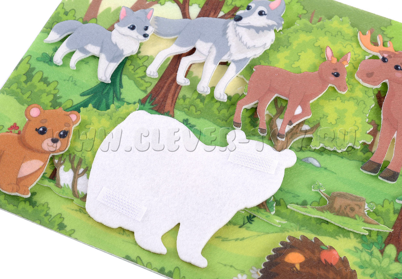 • Стимуляция воображения и творчества: Игровое поле с живописным лесом и мягкие фигурки лесных обитателей вдохновляют детей на создание собственных игровых сценариев и развитие творческого мышления.