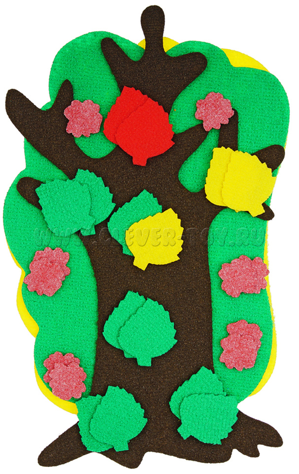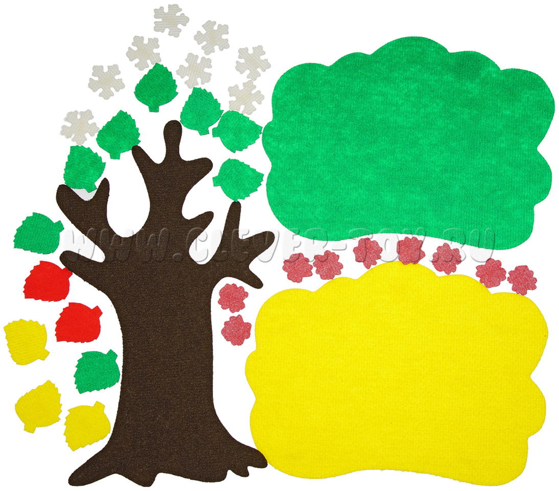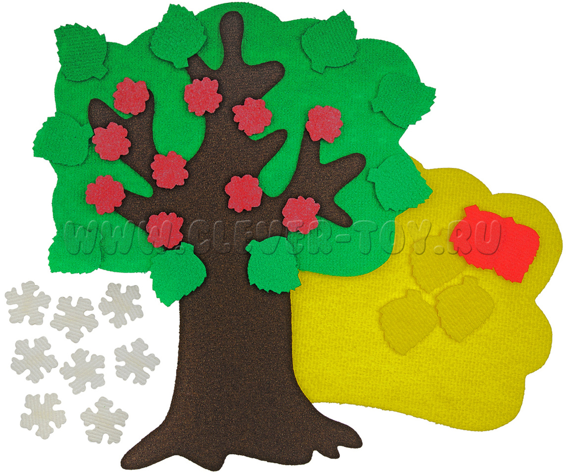 - снежинки 10 шт., листочки зелёные 10 шт., листочки жёлтые 10 шт., цветочки 10 шт.;