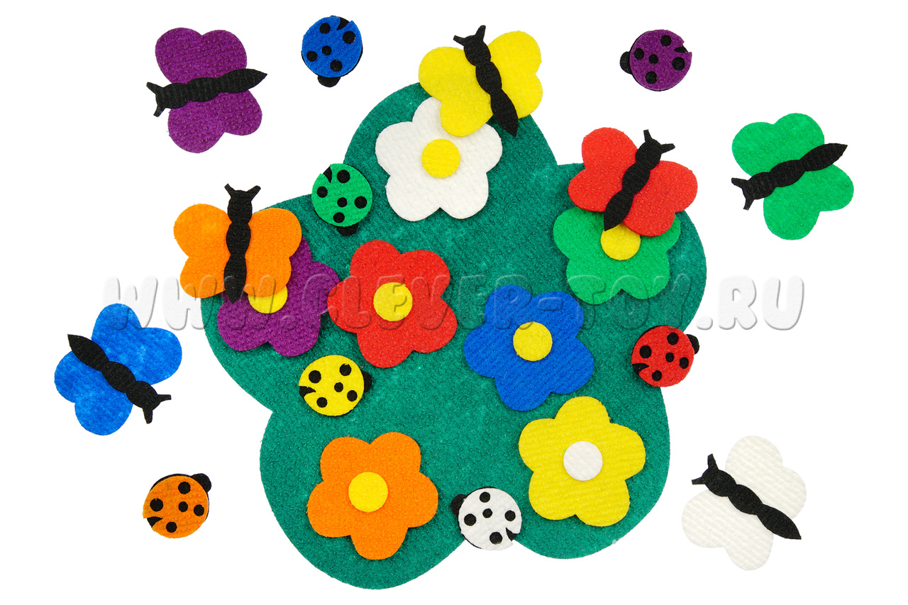 Уникальная авторская игра «Полянка с цветами» из ковролина – набор 4 в 1: