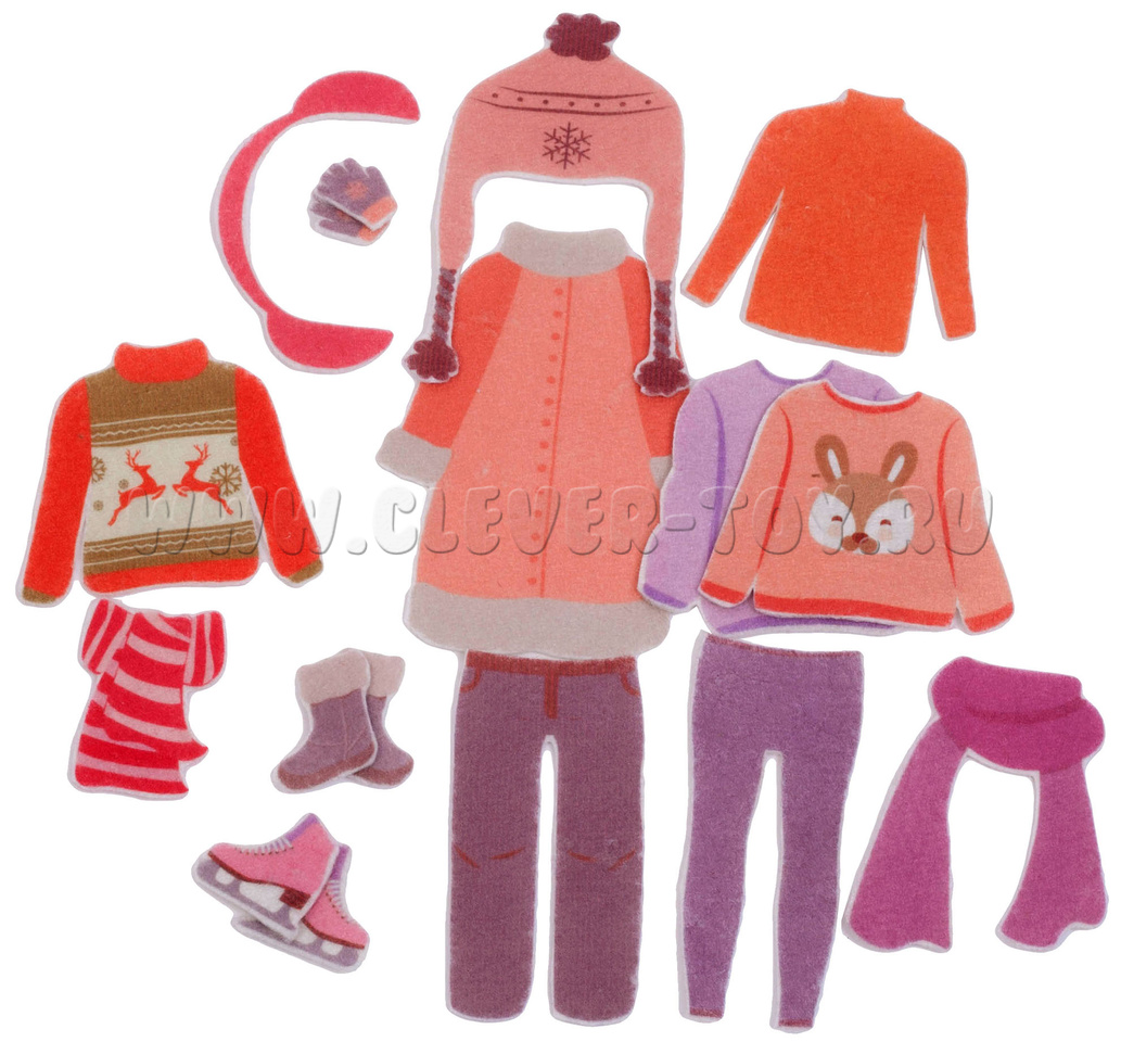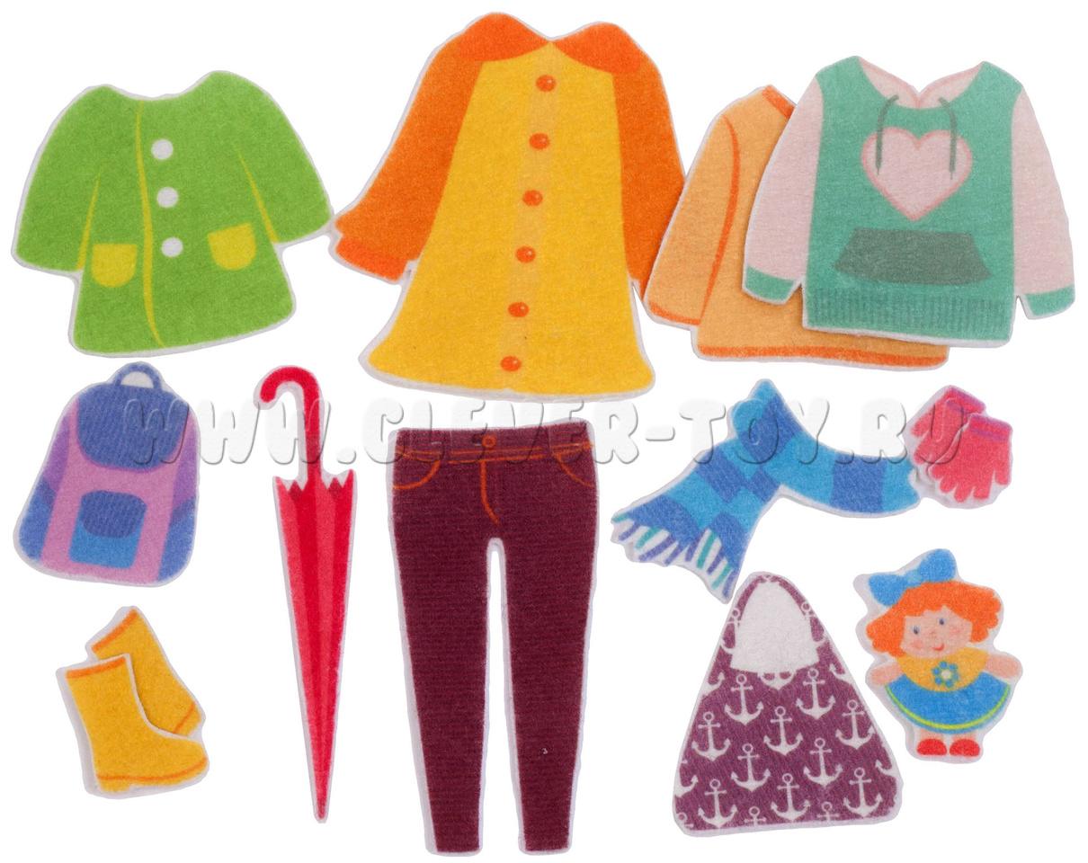 Предметы гардероба легко крепятся на фигурку девочки с помощью липучек. Вся одежда прорисована до мельчайших деталей.