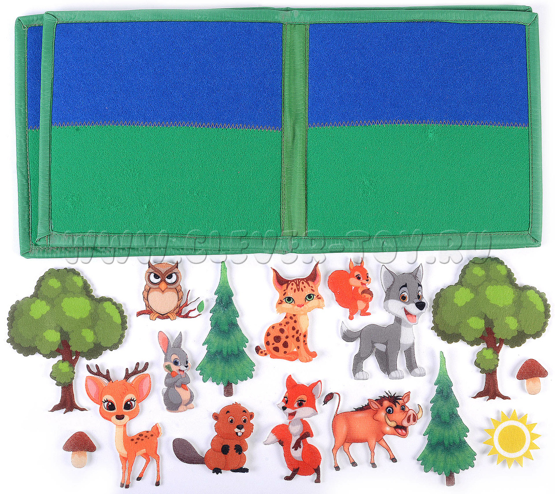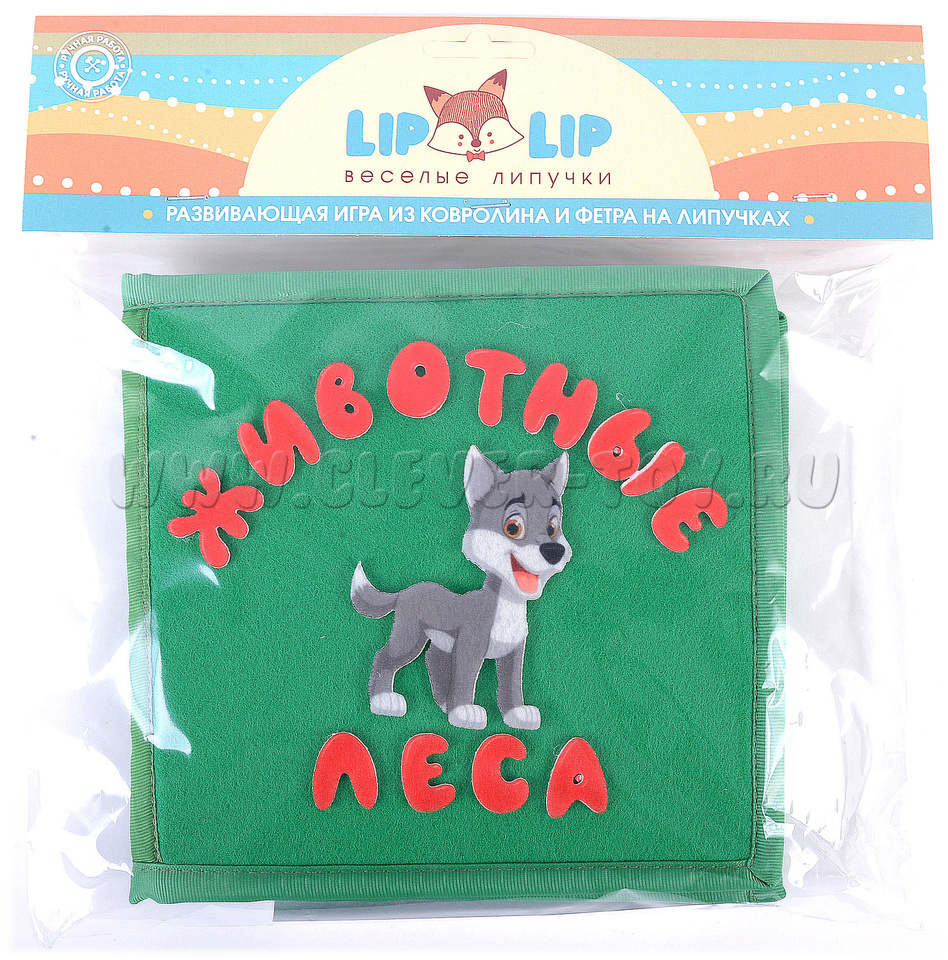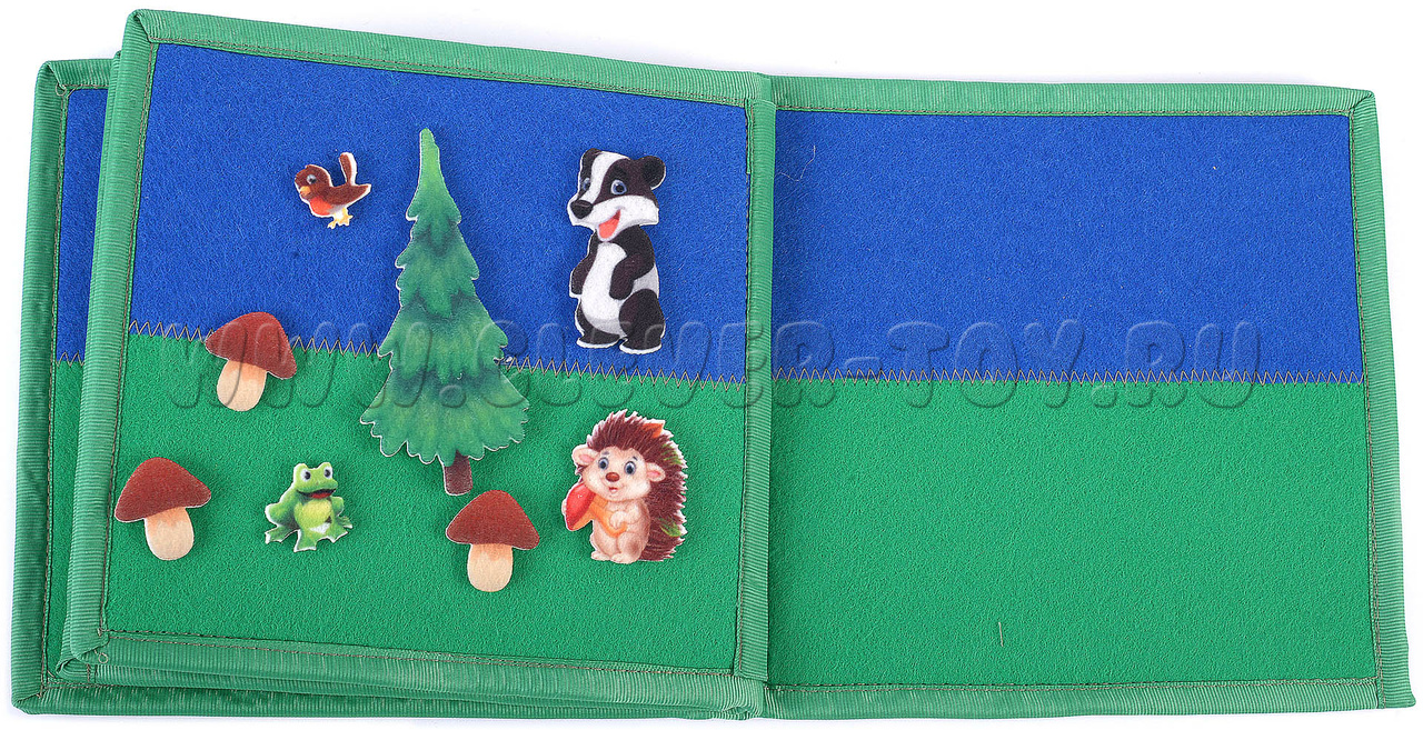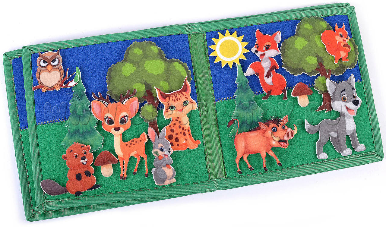 Игра-конструктор для детей старше 3-х лет. Авторская развивающая книга «Животные леса» из ковролина с фигурами на липучках от российской компании "Lip-Lip". Ручная работа.