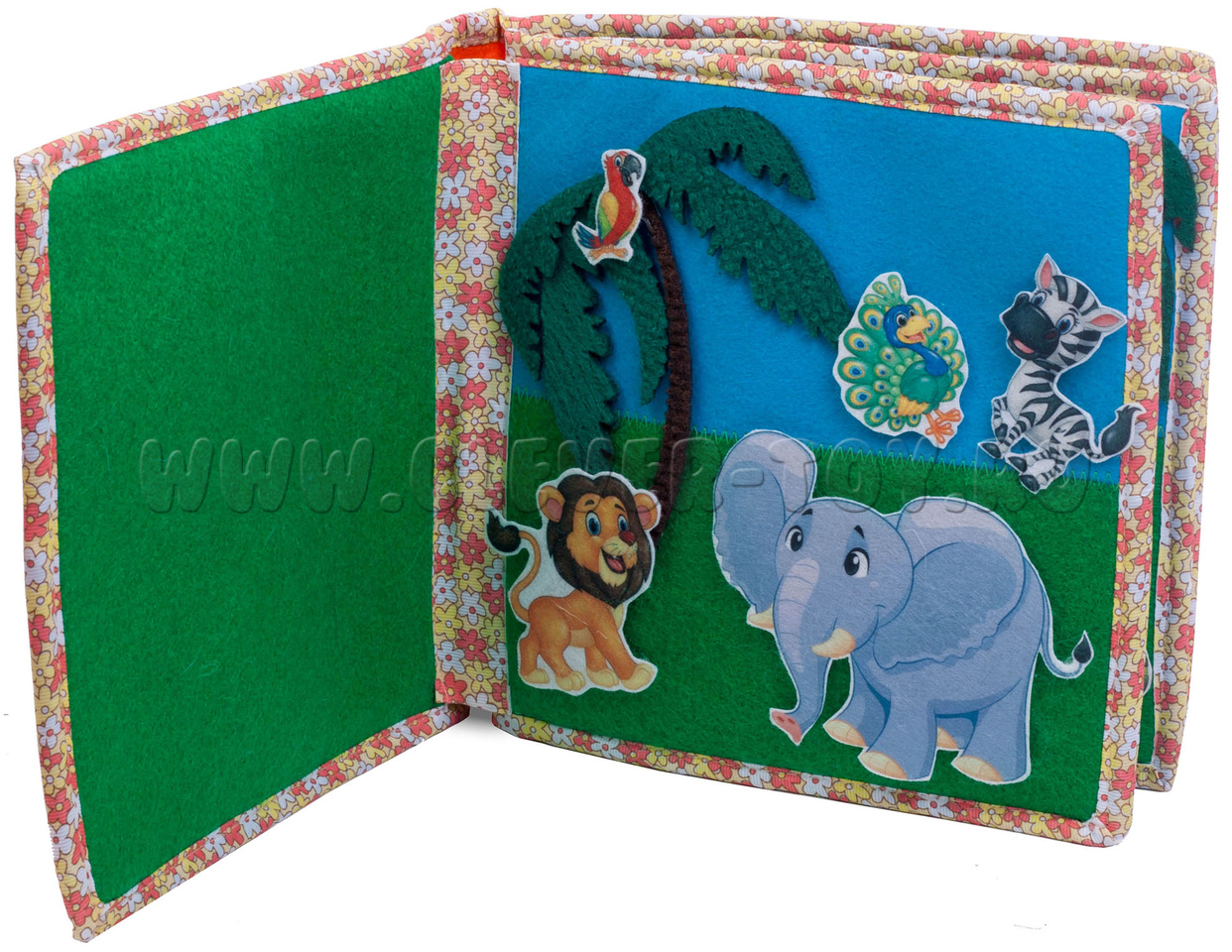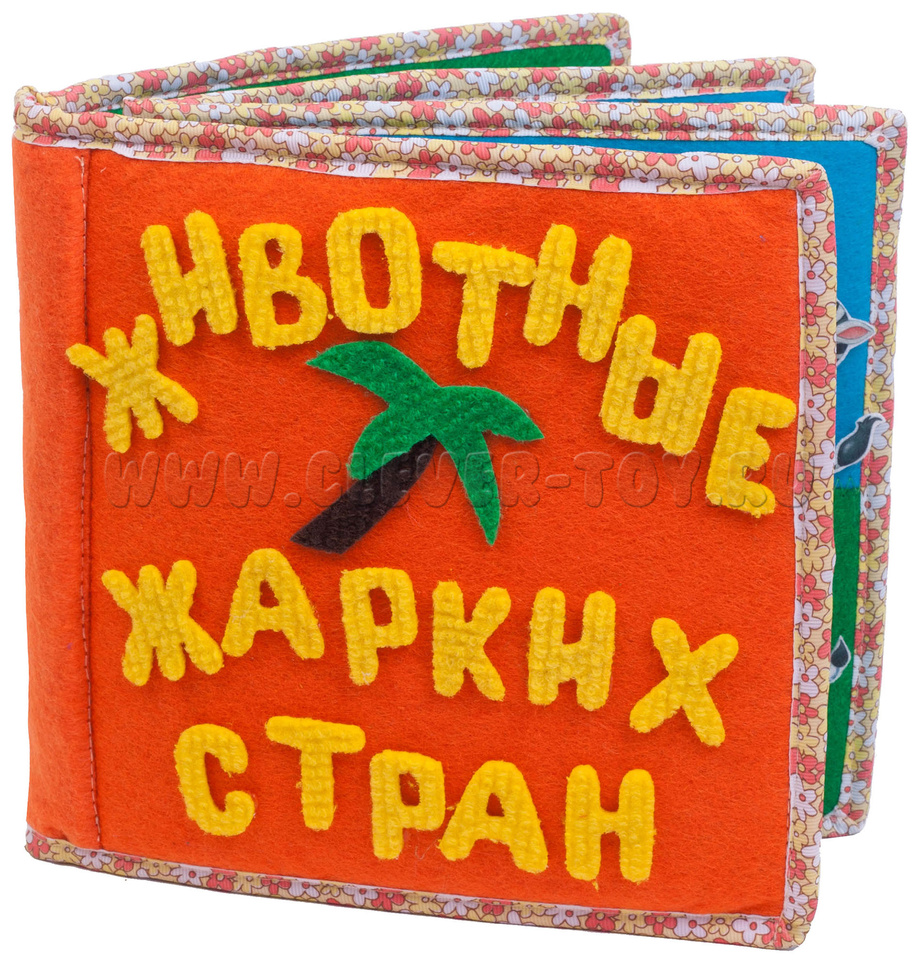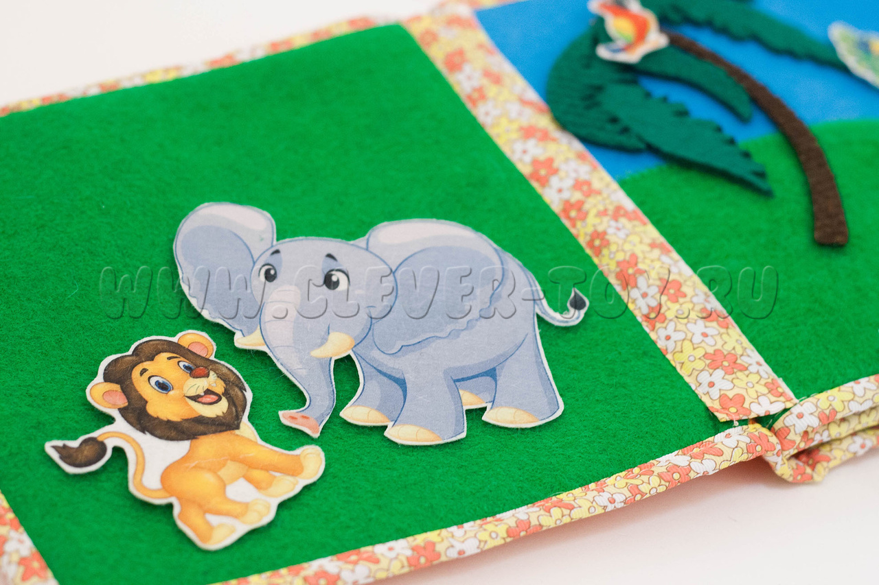 Авторская развивающая книга "Животные жарких стран" из ковролина с фигурами на липучках от российской компании "Лип-Лип".
