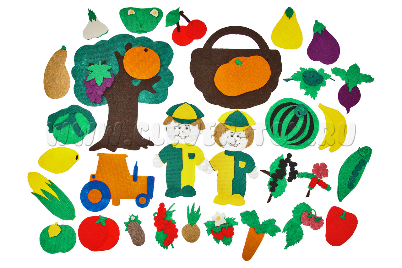 - овощи (от 8 до 17 см) – горох, тыква, картошка, чеснок, кабачок, капуста, свекла, морковь, помидор, огурец, баклажан, перец, кукуруза, лук;
