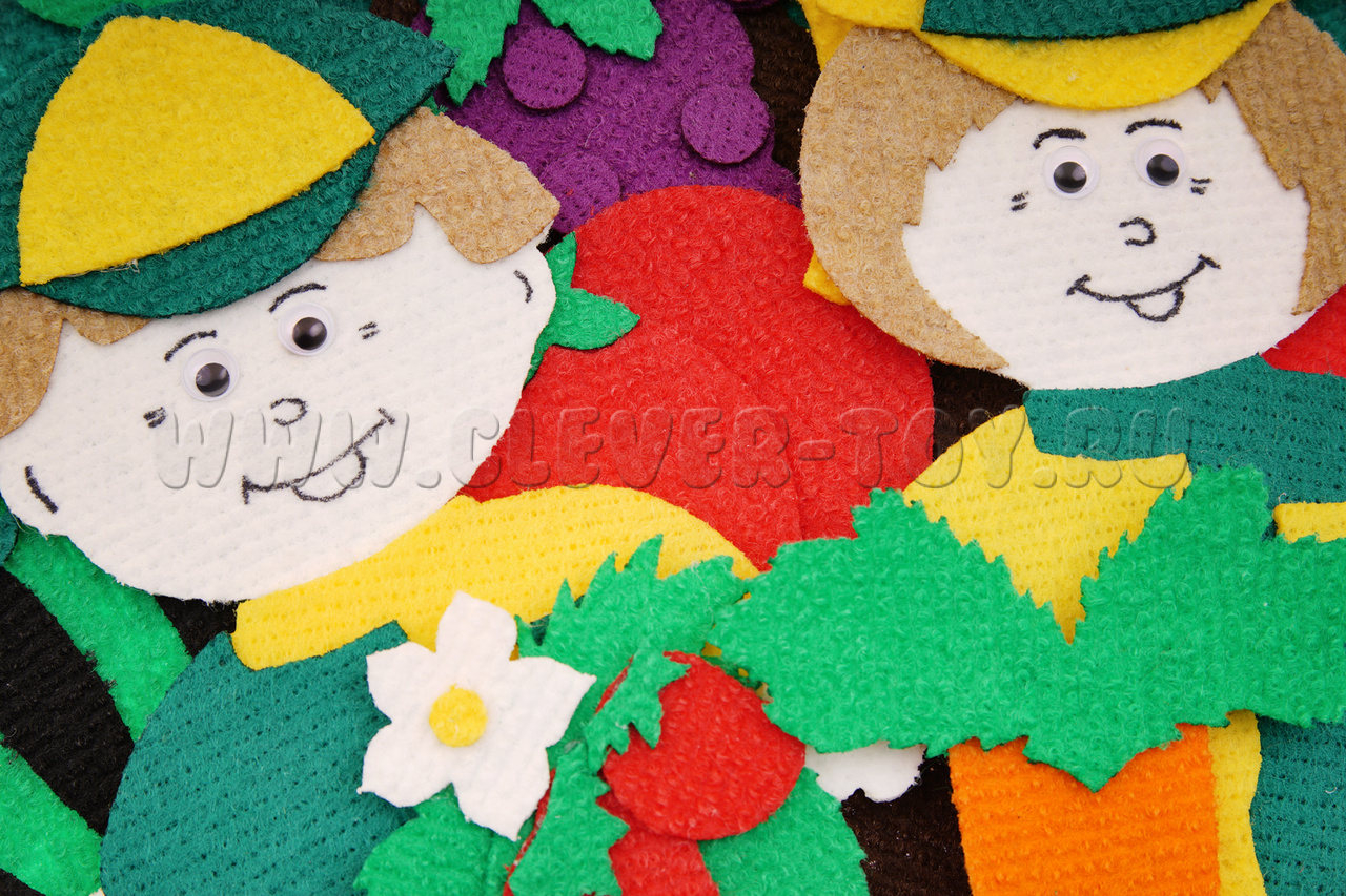 - герои – мальчик и девочка (каждый по 25*15 см); предметы – трактор (20*15 см), дерево (30*30 см), корзина (26*26 см);