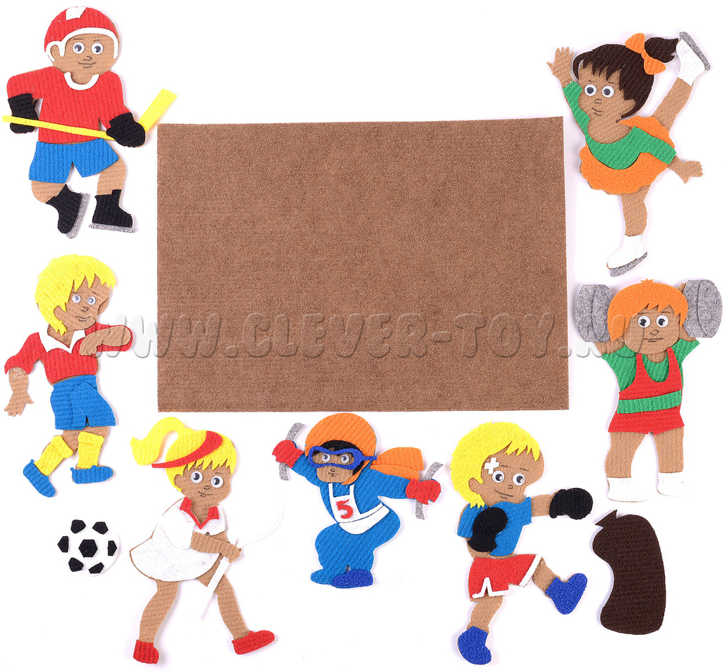 Многоразовая аппликация для плоскостного конструирования посвящена самым популярным мировым видам спорта: хоккею, фигурному катанию, футболу, тяжёлой атлетике, хоккею, лыжному спорту, теннису.