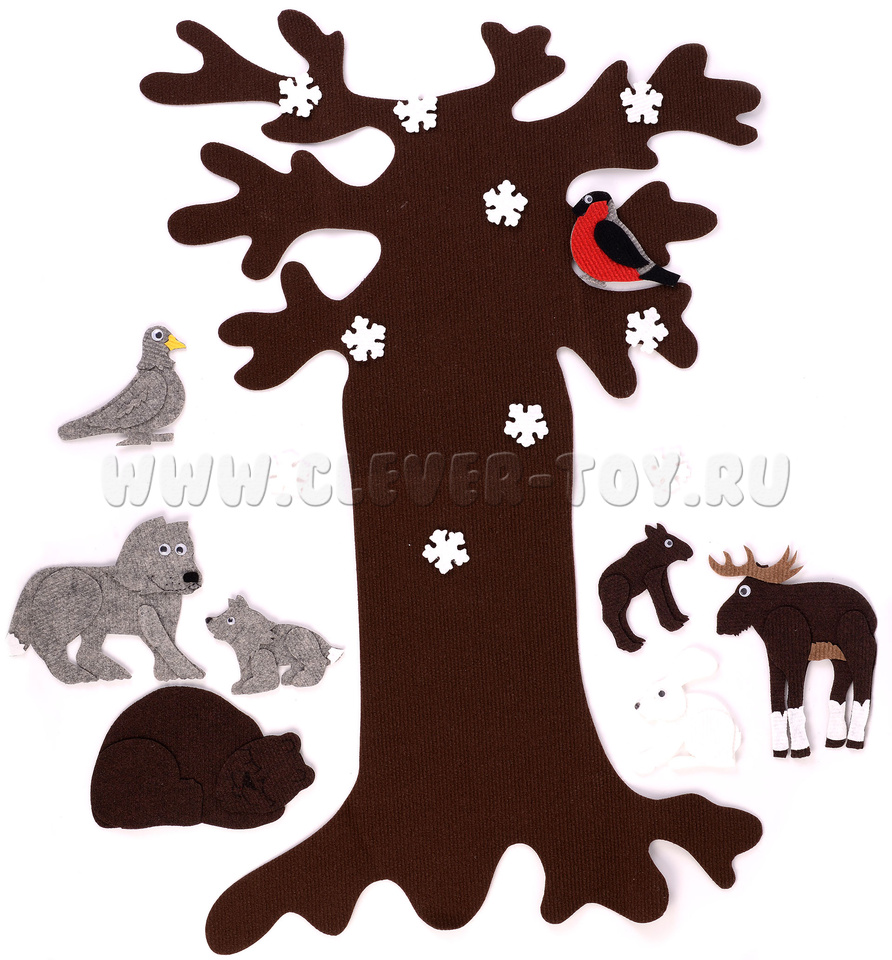 • элементы окружающего мира - большое дерево, солнце, облако, снежинки, цветочки, листья;
