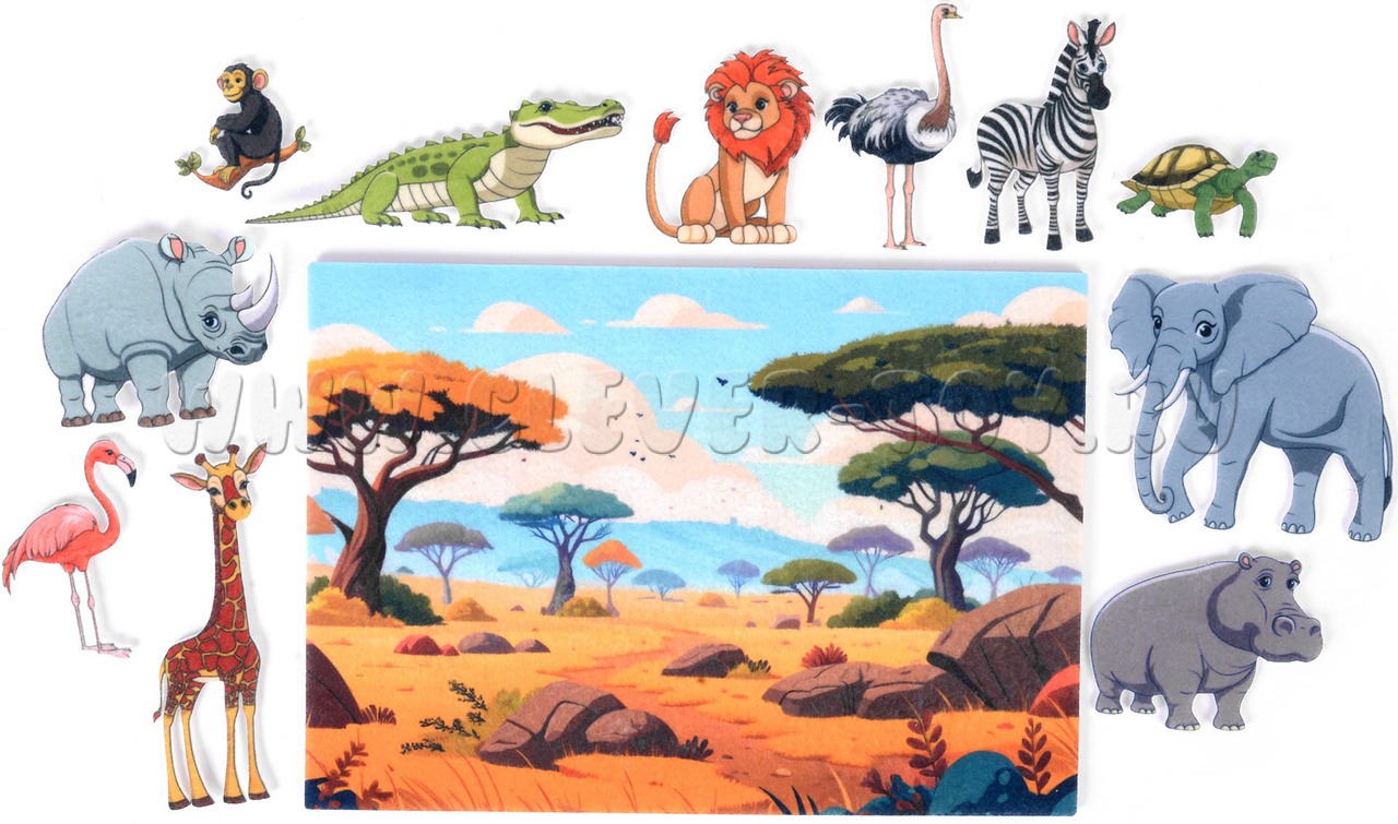 Зубастые и клыкастые, пятнистые и полосатые. Каких только существ нет на планете? С помощью тканевого конструктора «Животные жарких стран» ребенок в познавательной форме познакомится с самыми разными обитателями южных континентов. Регулярно занимаясь с учебным пособием, дети узнают больше об окружающем мире, расширят кругозор. Параллельно, при взаимодействии с мягкими деталями они смогут развить свои пальчики.