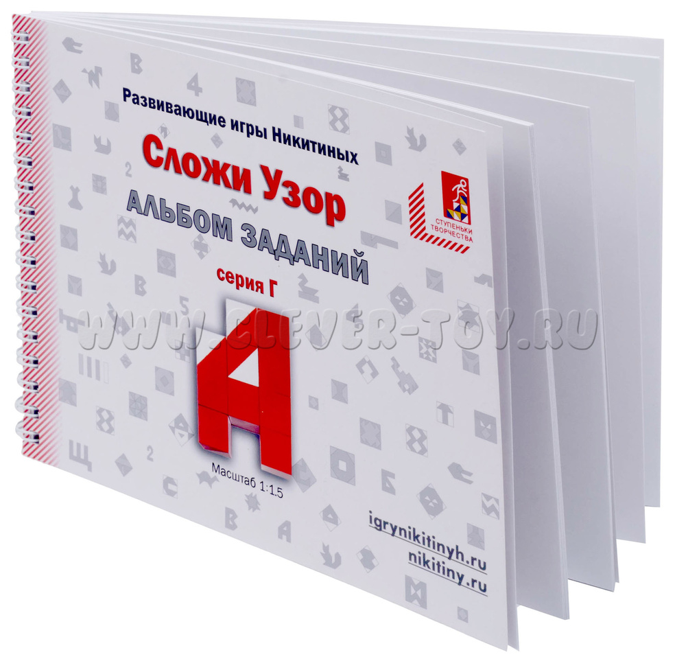 С помощью альбома серии Г и кубиков «Сложи узор» ребёнок сможет складывать цифры от 0 до 9, буквы русского алфавита от А до Я, что поможет подготовить ребёнка к чтению и письму, а также освоить начальные математические знания.