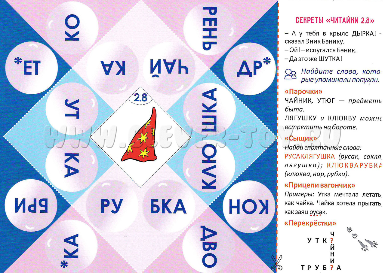 Каждый лист Читайки необходимо вырезать по контуру, уголки согнуть по белым пунктирным линиям.