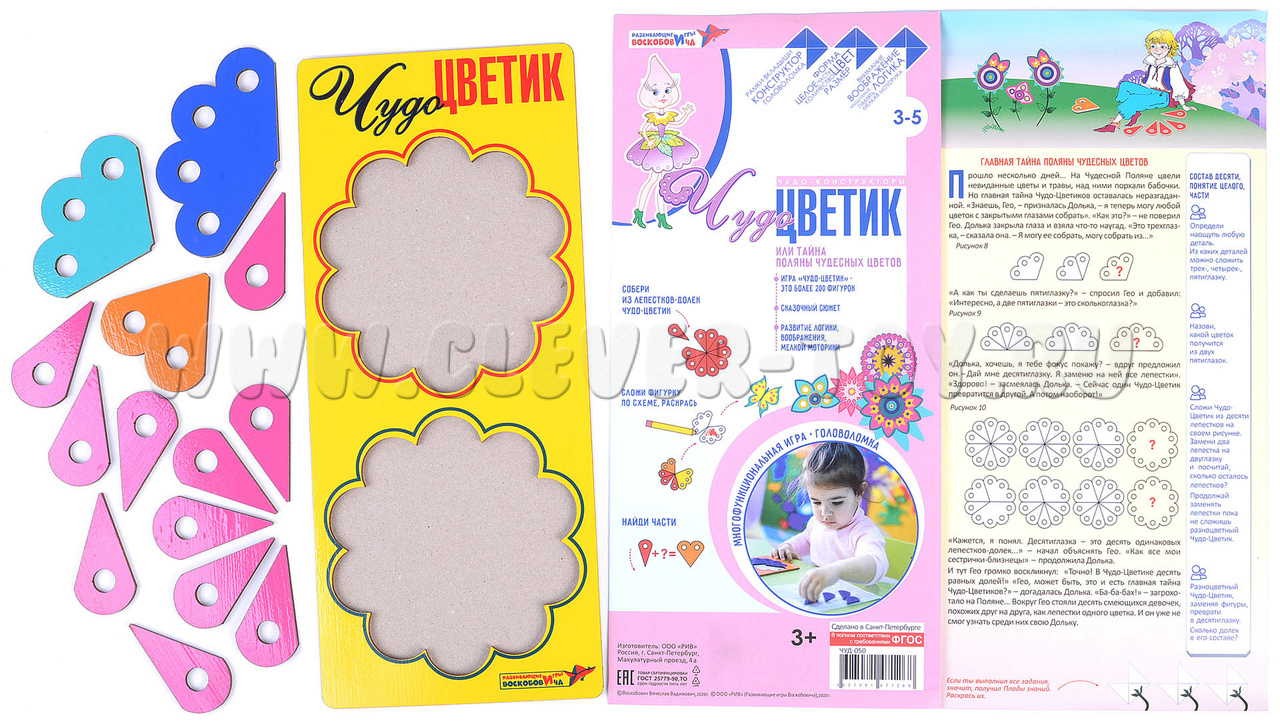 - игровое поле из дерева, куда легко вставляются лепестки Чудо-Цветика;