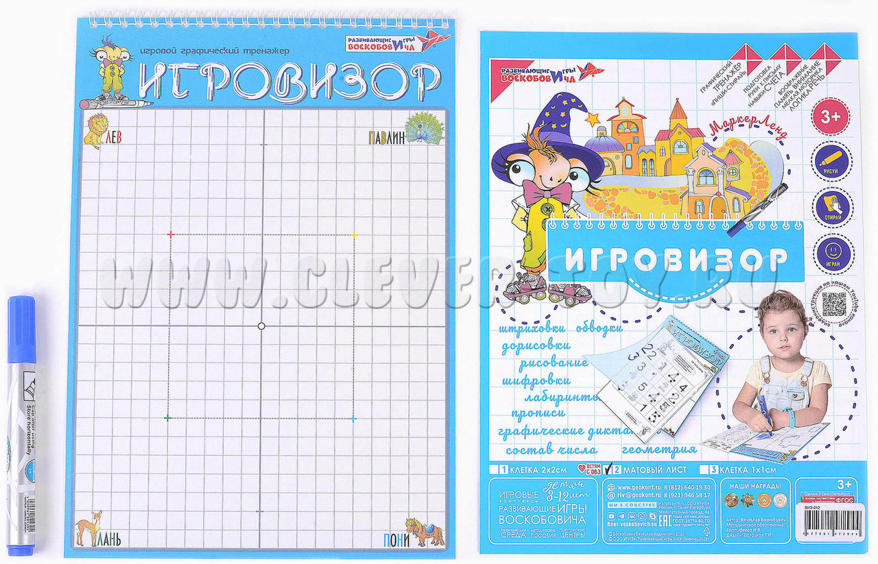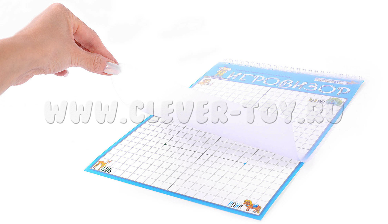- Картонная основа (цв. печать, разлинована на клетки1х1см, формат А4), верхний лист матовый пластик на переплётной пружине - 1шт.;