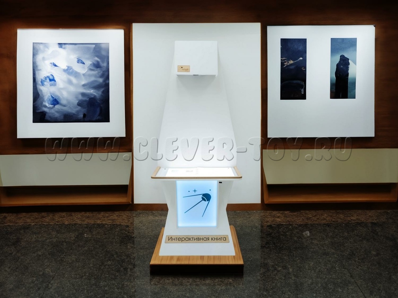 Интерактивная проекционная книга "ИНТЕРЛИСТ" с проектором, светодиодной подсветкой, встроенным компьютером и физическими пластиковыми листами. На листы проецируются страницы книг, загруженных или созданных в редакторе. При перелистывании страницы меняются в соответствии с номером листа.