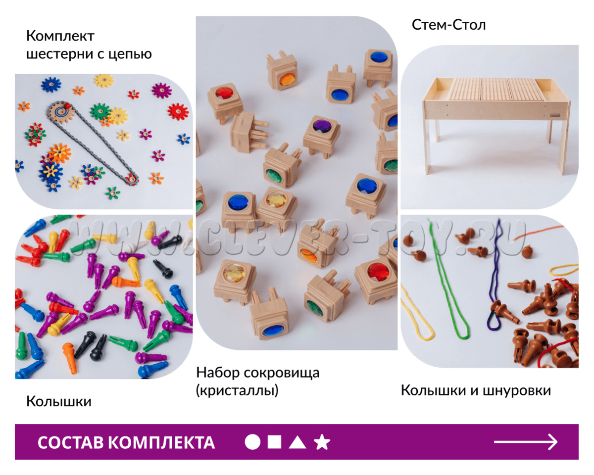 STEAM - стол комплектуется методикой, с достаточным количеством упражнений, охватывающих большое количество образовательных областей.