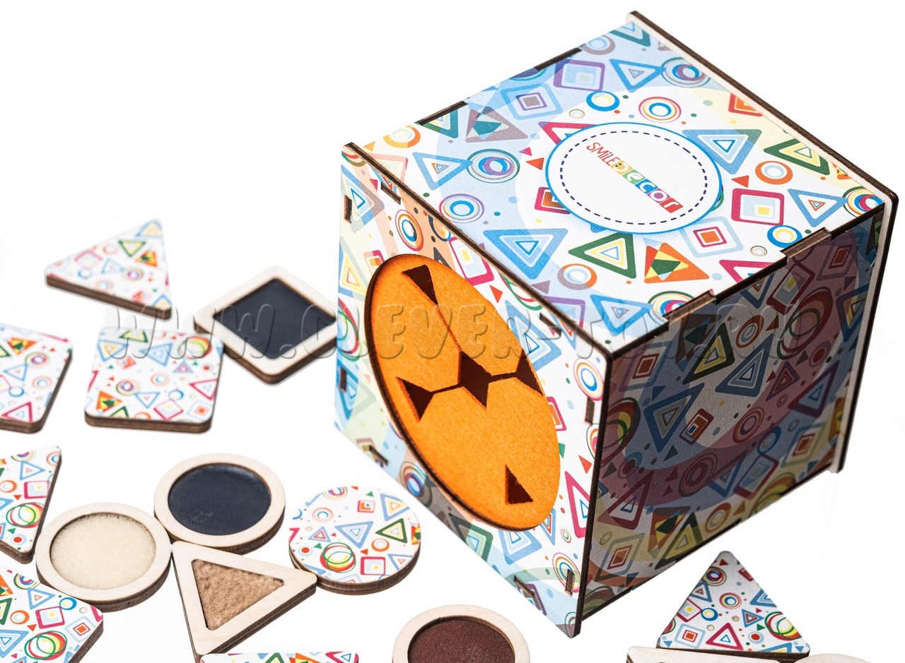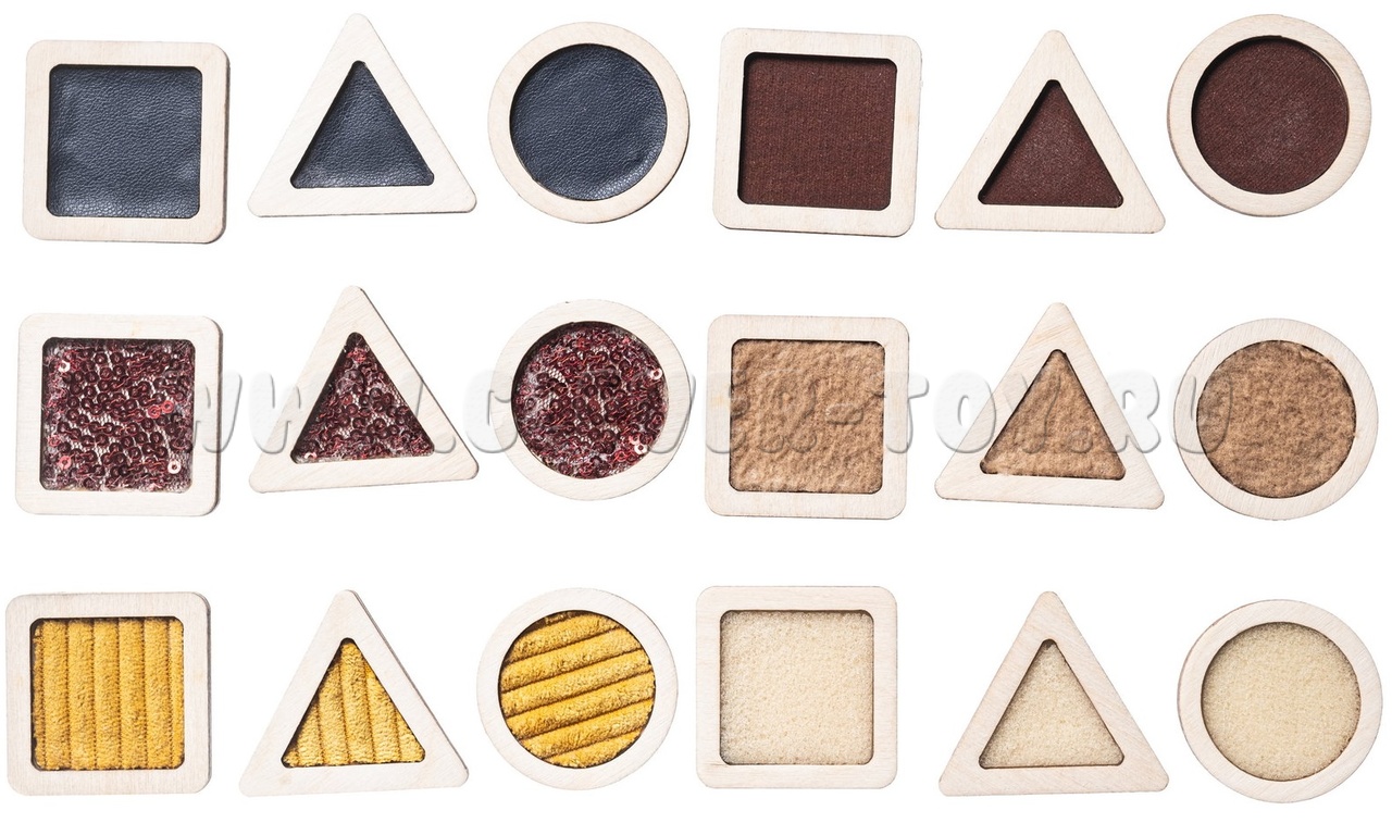 3.    Игра "Найди на ощупь". Разложите на столе 6 фишек с разной фактурной поверхностью. Оставшиеся 12 фишек спрячьте в куб. Выберите одну из фишек на столе и попросите ребенка найти на ощупь в кубе одну или две фишки с такой же фактурной поверхностью.  Поменяйтесь с ребенком ролями.