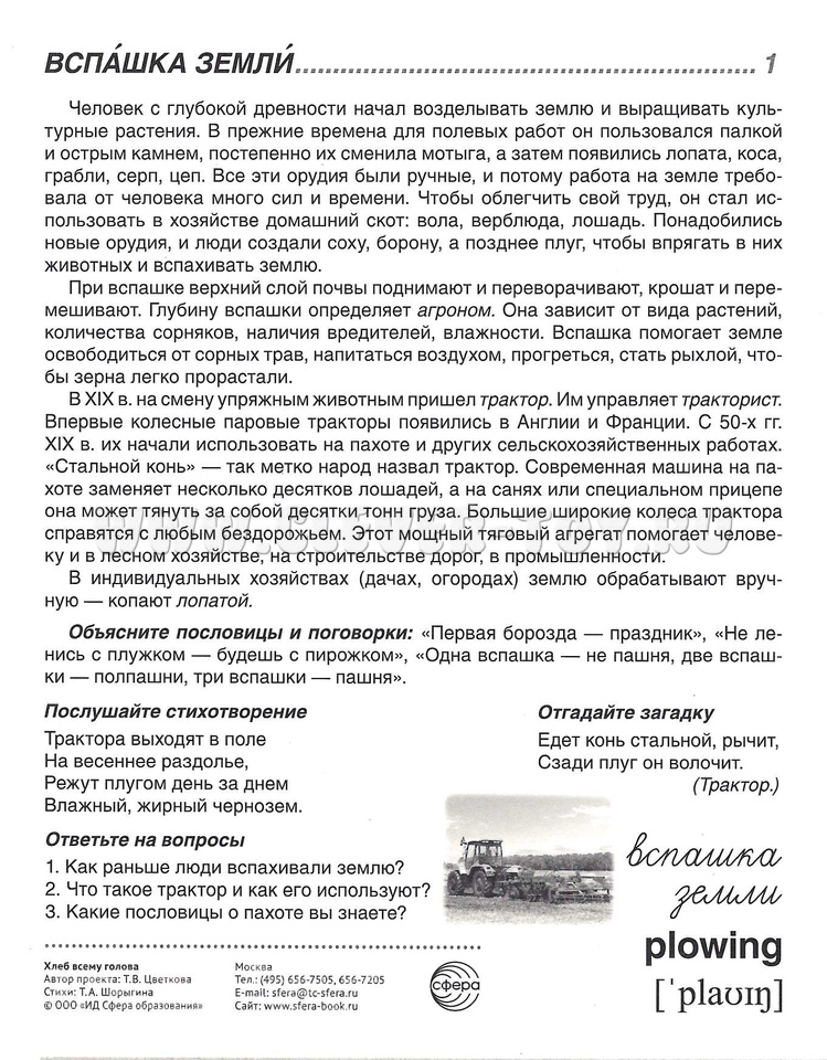 • Выращивание хлеба: вспашка земли, боронование земли, посев зёрен, рост посевов, борьба с вредителями, хлеб созрел, уборка урожая, хранение зерна.