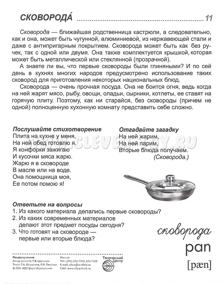 На обороте каждой предметной картинки - описание, вопросы для ребёнка, название на русском и английском языках.