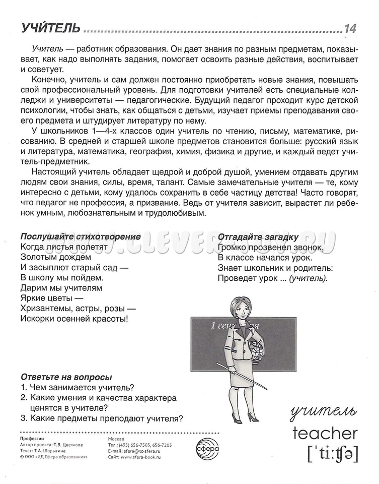 Набор карточек "Профессии" состоит из бесед, стихотворений, загадок и вопросов по теме. Комплект включает 16 цветных демонстрационных картинок с текстом на обороте, названия тем имеют перевод на английский язык.