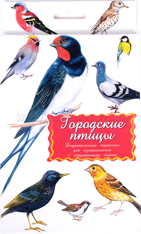 В набор входит 16 карточек с изображениями птиц, обитающих в городе: