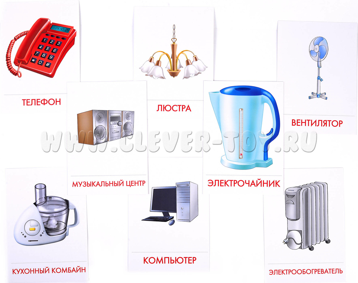 В набор водит 16 карточек с изображениями электробытовых приборов: