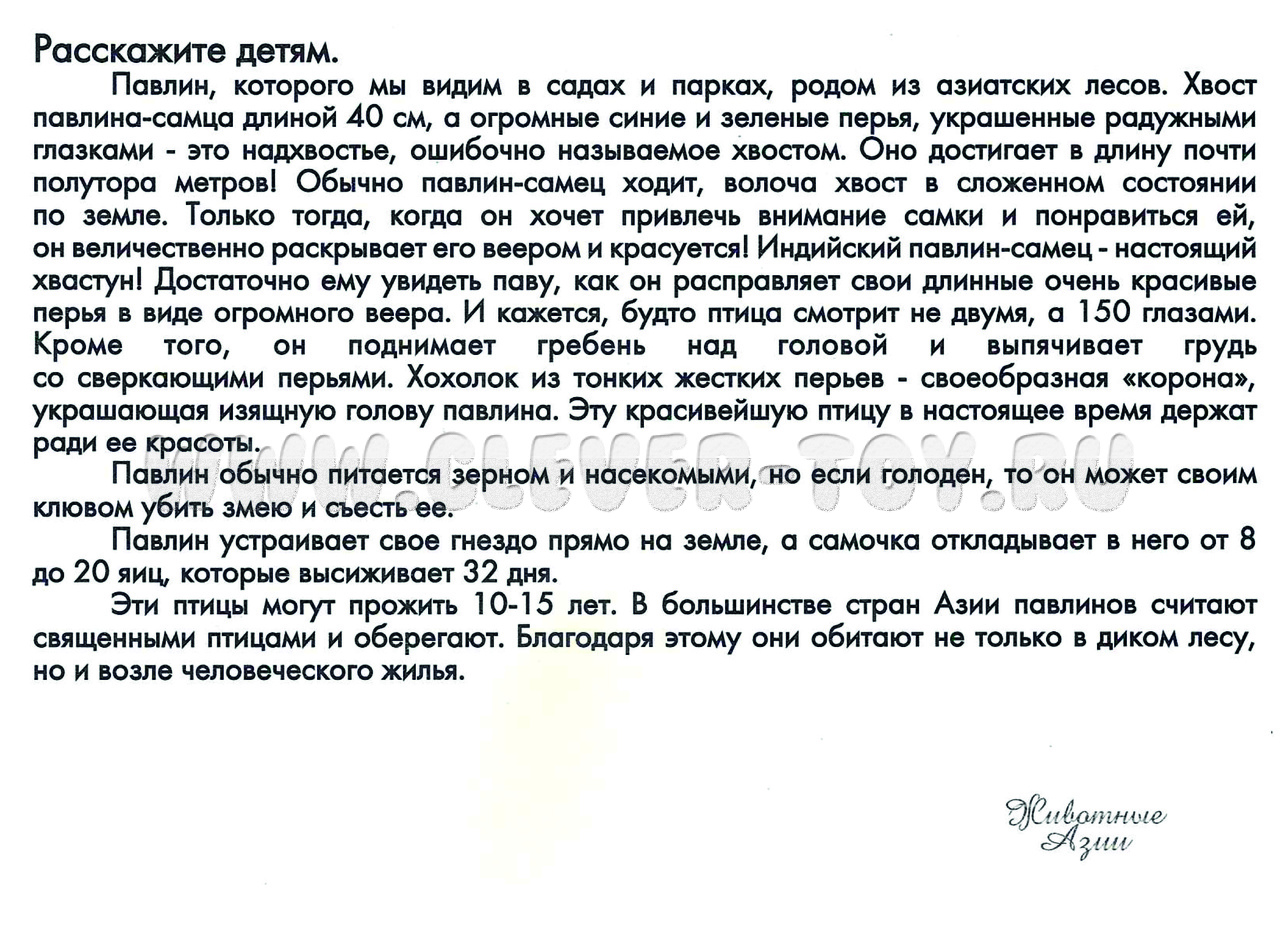На одной стороне карточки расположена яркая картинка с изображением животного Азии (изображение детальное и реалистичное), на обратной стороне – доступная для ребёнка информация о животных (описывает внешний вид животного, ареал обитания, особенности питания и строения, интересные факты о происхождении животных Азии).