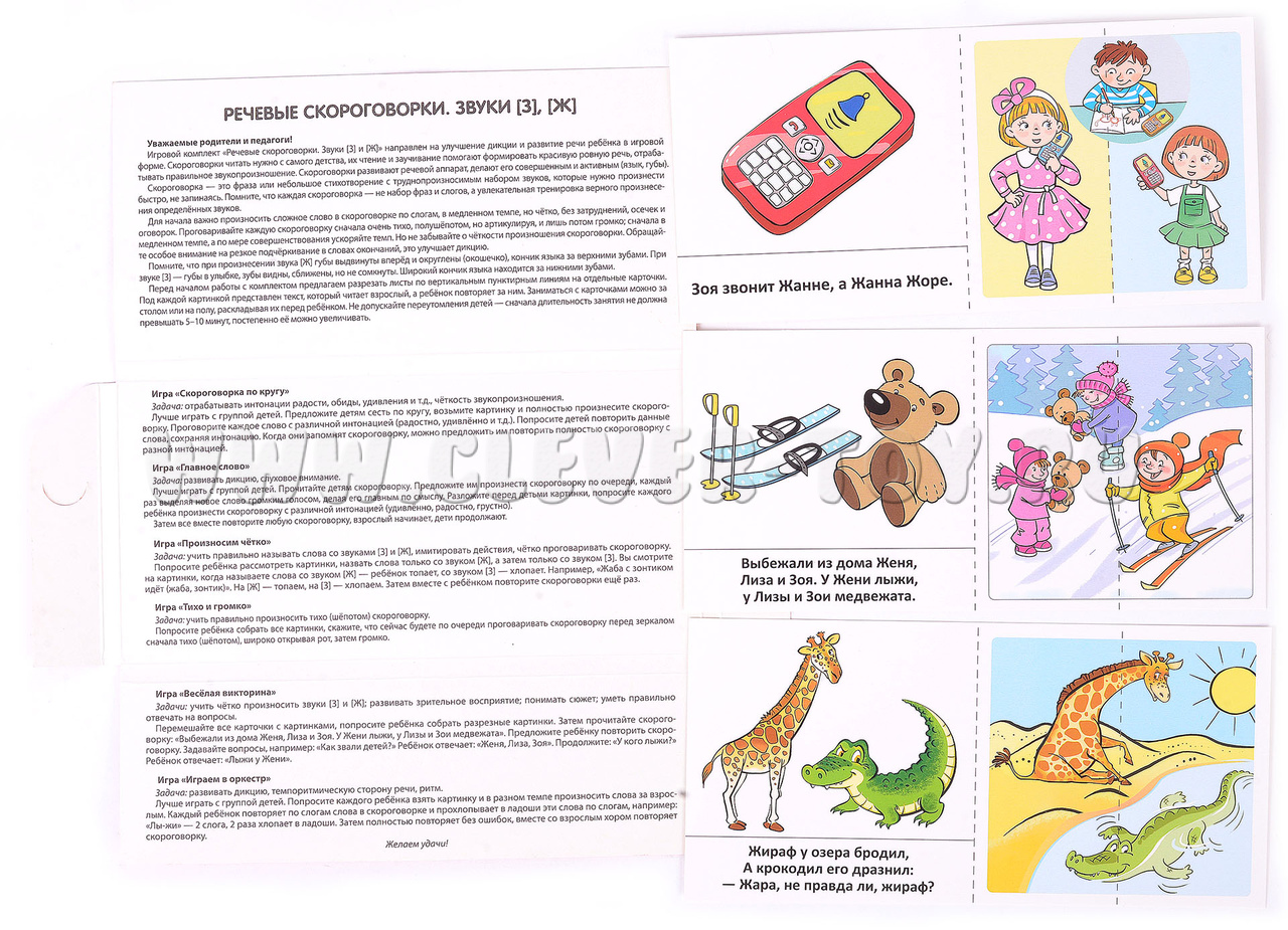 С радостью представляю вашему вниманию комплект речевых скороговорок, состоящий из 12 листов, 36 карточек и 6 увлекательных игр. Этот уникальный набор разработан специально для детей в возрасте от 3 до 7 лет, чтобы помочь им развить речевые навыки и улучшить дикцию.
