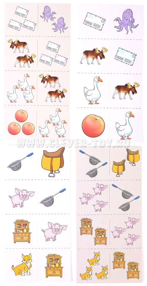 В комплект входят 12 карточек, 48 картинок и 9 игр.
