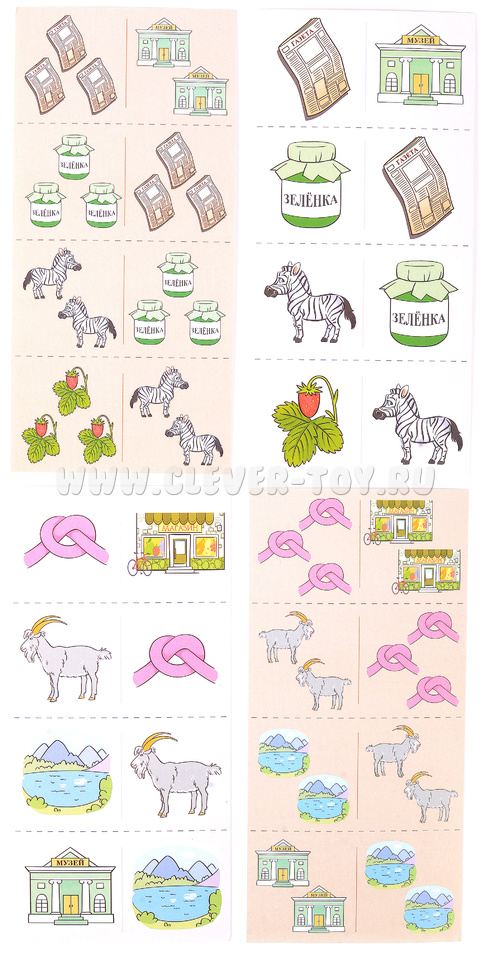 В комплект входят 12 карточек с 48 картинками и 9 игр.