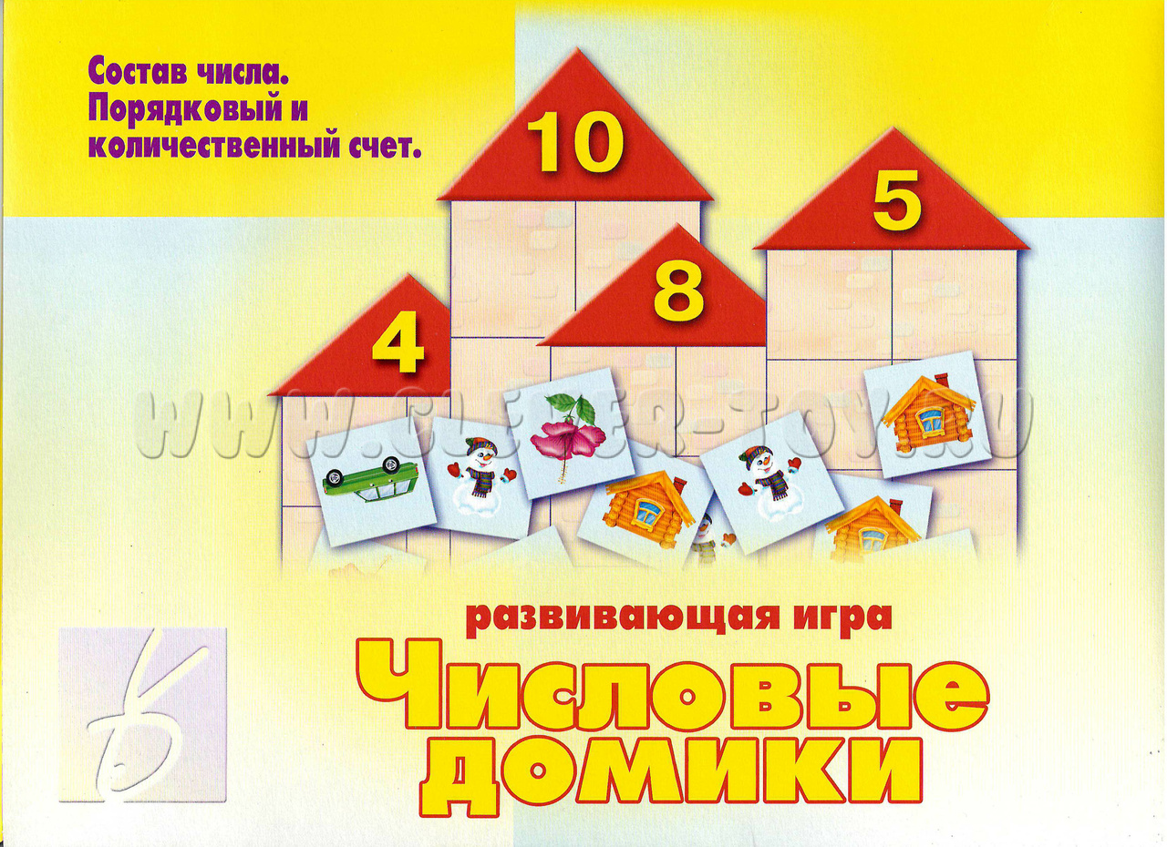 Игра "Числовые домики" поможет малышам старше 3-х лет познакомиться с основами арифметики, составом числа, обучиться порядковому и количественному устному счёту и начать решать простые примеры на сложение и вычитание.