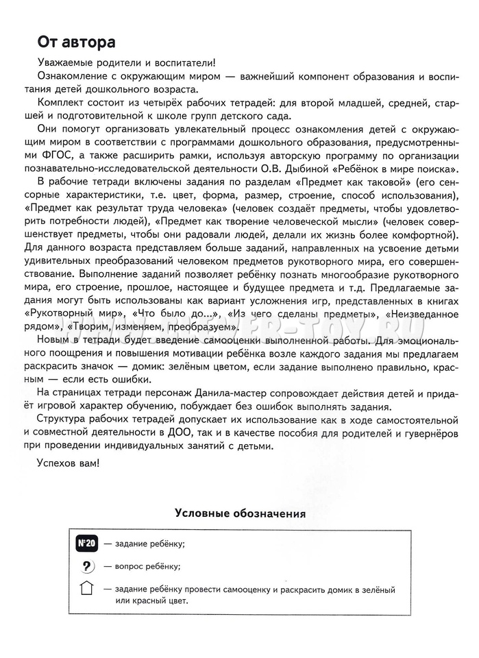 Тетрадь предназначена для работы с детьми 5-6 лет. Может помочь организовать познавательно-исследовательскую деятельность детей по авторской программе О.В. Дыбиной "Ребёнок в мире поиска" в детском саду, дома, в группах развития.