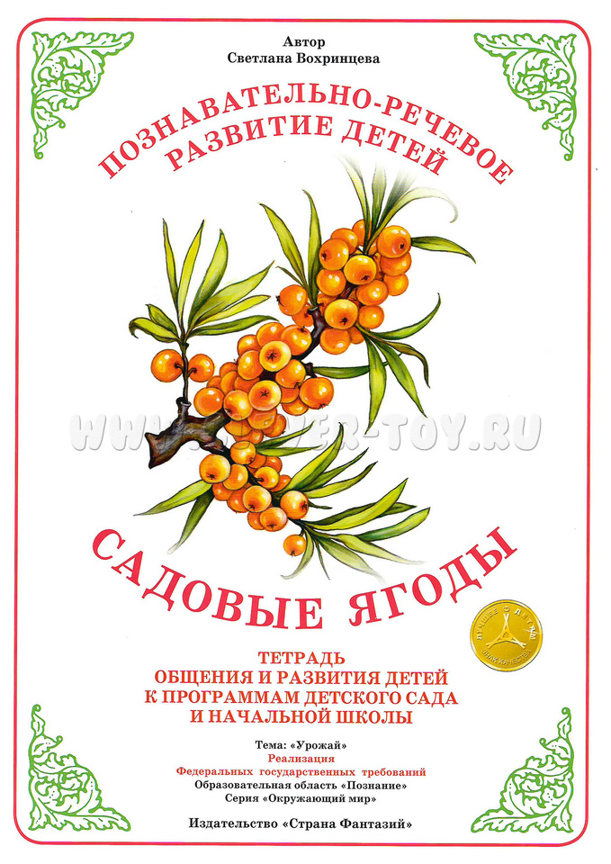 Тетрадь для развития детей «Садовые ягоды» содержит: красочные иллюстрации разных видов ягод с познавательной информации о них.