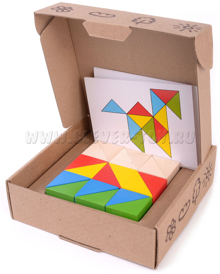 Деревянный конструктор "Занимательные призмы" для самостоятельной сборки ребенком разноцветных фигур по образцам на карточках-заданиях, либо используя воображение.