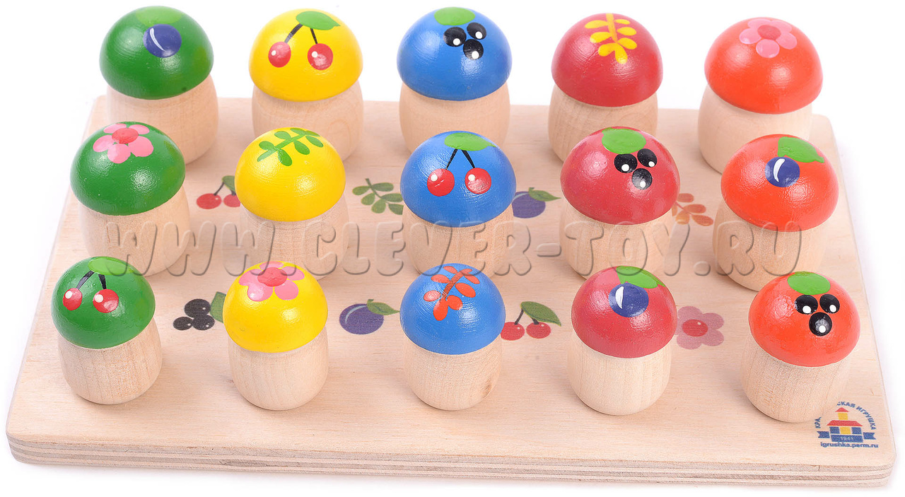 Простая и очень увлекательная игра! С помощью нашего красочного грибного набора Ваш ребенок быстро освоит счет до 15, запомнит основные цвета, научится группировать предметы по величине, а также познакомится со значением слов, используемых в повседневной в жизни, например, "такой же", "разные", "одинаковые".