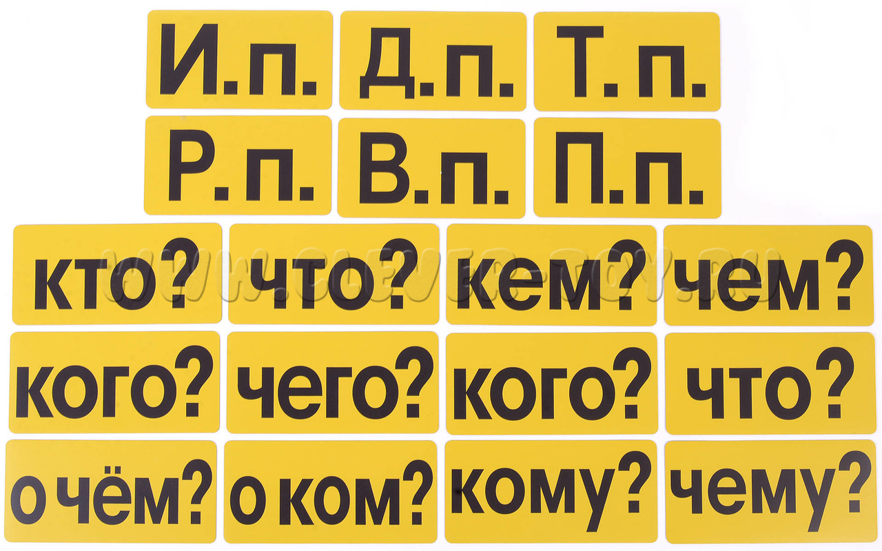 Набор магнитных карточек "Падежи" (фон жёлтый)*