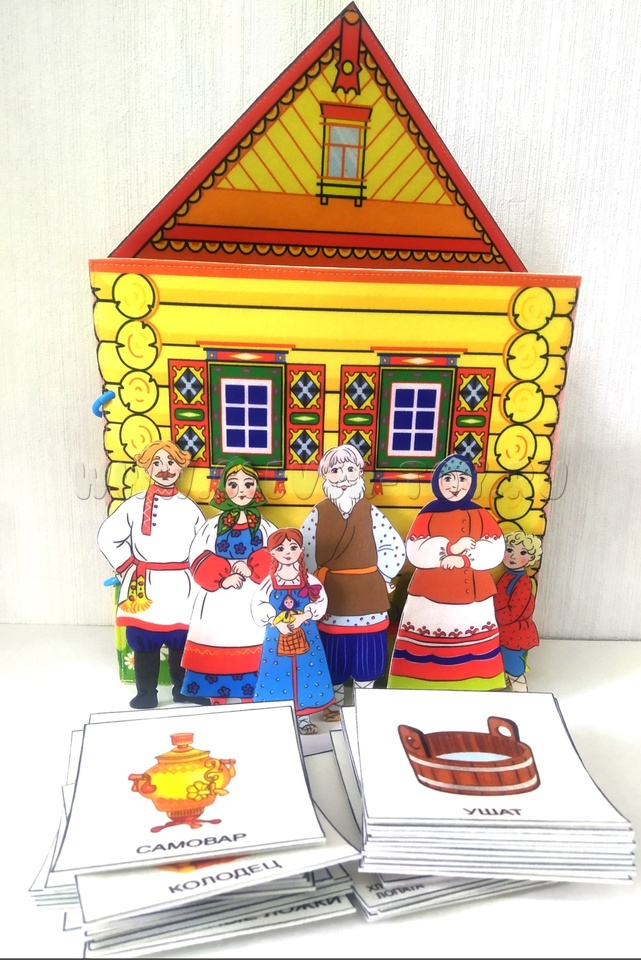 Папка - декорация из фетра "Русская изба" + 35 карточек