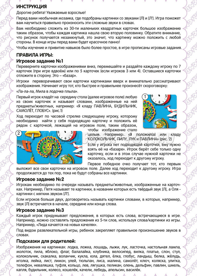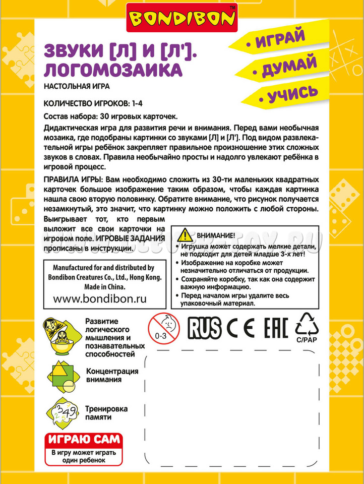 Настольная игра "Логомозаика. Звуки [Л] и [Л']" из серии "Играй Думай Учись".