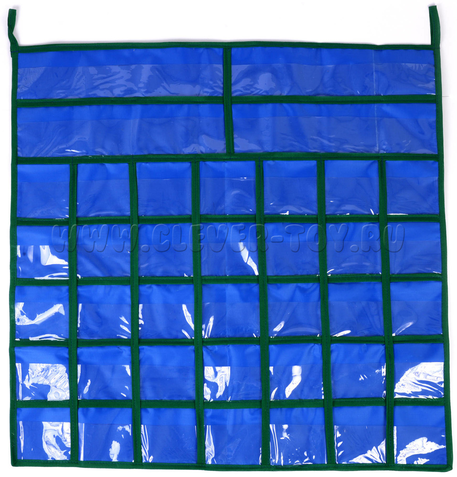 35 прозрачных кармашков (ширина 8 см) для букв и знаков,