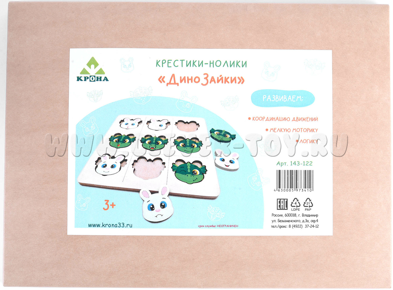 Игра крестики-нолики "ДиноЗайки" 10 деталей+рамка
