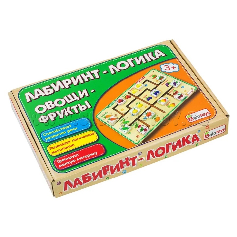 Фишки с рисунками двигаются по пазам на доске с изображением фруктов и овощей. Каждая фишка-картинка должна оказаться рядом с соответствующим рисунком.