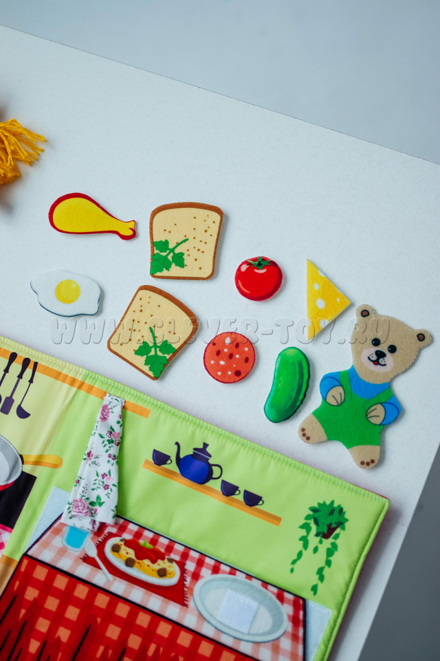 Эта папка познакомит вашего малыша с куклой Машей-поваром. В развёрнутом виде она имитирует кухню.